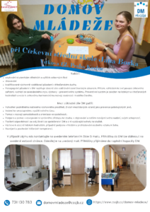 Volná místa na Domově mládeže Jana Marková Novinky 28.4.2026 Pokud znáte nějakou dívku, která bude příští rok studovat v Praze střední školu (SŠ) nebo vyšší odbornou školu (VOŠ) a hledá bydlení, nabídněte jí náš Domov mládeže v Praze Karlíně. Více na letáčku. Těšíme se na nové zájemkyně 🙂